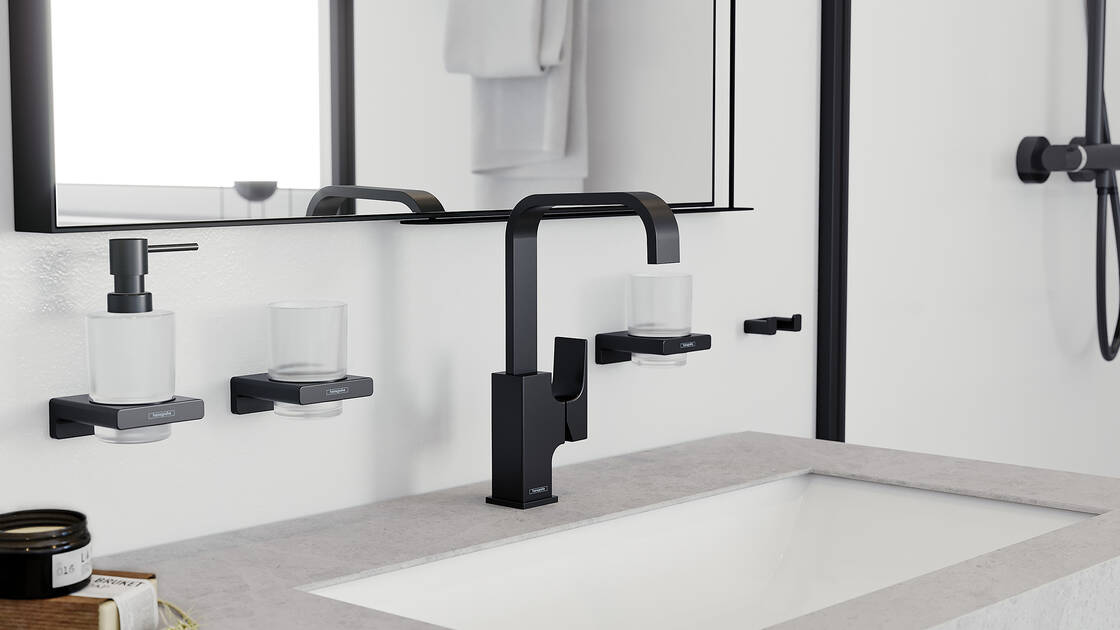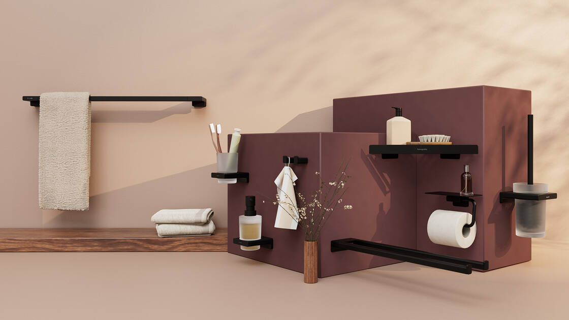 Do you prefer geometric bathroom design with soft edges? Then AddStoris Q is the perfect addition to your interior. The clean lines and defined shapes work really well with linear and flat bathroom designs for a coherent and bold look. Create a seamless design for your bathroom with AddStoris Q. There are also six exclusive FinishPlus finishes for perfect coordination with hansgrohe faucets and showers.
